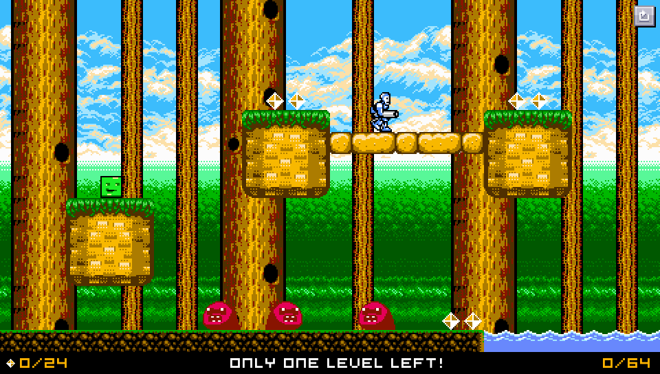 Personally I found no true flaws to the game. It ran smooth, it was fair in its collision detection, and the challenge, while occasionally frustrating, wasn’t being mean. Then again I am a retro gamer and have enjoyed all of these consoles/microcomputers for their positives and negatives. It’s clear from the Super Icon’s web site that a group of gamers do not share my sentiment when it comes to flaws like not seeing where you are going to fall or the behavior of enemies. If you are patient, observant, and don’t mind dying a lot, this title has a very Demons Souls methodology about it; you can learn to get around these obstacles if you just pay attention. On a particular level that had leaps of faith (and I’m not talking about the level “Leap of Faith” either) as you jumped around large pools of water, it looks like you’re just jumping and praying. Not the case, there are specific ledges and areas that will keep you out of harms way if you fall off of them. Admittedly you have to die a few (or a few dozen) times to learn the layout of the level, but it’s a mechanic you can work with nonetheless and it again comes down to skill and puzzle solving rather than pixel counting to overcome. For those that still struggle, complete maps are now available at the developer’s site.