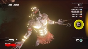 The system itself is based on three basic moves: attack, stun, and throw, each mapped to a face button. All are useful, but the button masher in you will probably start off just using attack. Later on you’ll learn that the stun attack or throw attack are different ways to halt the wall of enemies coming from one side so that you can deal with the other. In addition L1 acts as a counter that will dispatch of an enemy if your timing is precise, otherwise R1 is a safe block that will always protect you provided you are facing the enemy. Flicking the right stick in either direction will perform a roll move that won’t really protect you from harm, but can generate some distance faster than walking. If you can’t already see where this is going, your enemies will spend their entire time trying to get you when your back is turned and the later you get in the game the smaller that timing gap becomes. By the end there were combat scenarios that almost felt like quick time events without prompts, but coming out one of those encounters is nothing shy of rewarding. These basic offensive and defensive moves are just the beginning, however, because the final and most important mechanic is your blood factor. Whenever you draw blood you have a 3-bar meter that begins to fill, unlocking certain abilities that come at a cost. You can unleash these attacks by holding R2 and pressing a specific face button. Square will start a sequence where you can restore life, triangle increases score, circle is an unlocked move that works as a combo attack. Finally there is your blood combo that uses the full 3 bars of blood but allows you to kill all the enemies coming at you in rapid succession, not to mention a tightly timed series of button presses, with an exponential growth in score. It’s a high risk move because it drains your blood meter, but it also allows you to one-hit all enemies if you can get the timing down, which will be helpful in late levels. I’m sure it feels a bit overwhelming and complicating in this paragraph, but it’s a system you can easily get down after the initial tutorial-like level and spend the rest of the game mastering.